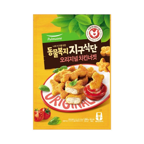 풀무원의 동물복지지구식단치킨너겟_오리지널은 국내에서 유일하게 동물복지 축산물 인증을 받은 치킨너겟 제품입니다. 이 제품은 동물복지 축산 농장에서 기른 건강한 닭고기를 사용하여 만들어졌습니다. 또한 에어프라이어로 조리해도 바삭한 식감을 유지할 수 있어 건강한 맛을 즐길 수 있습니다.